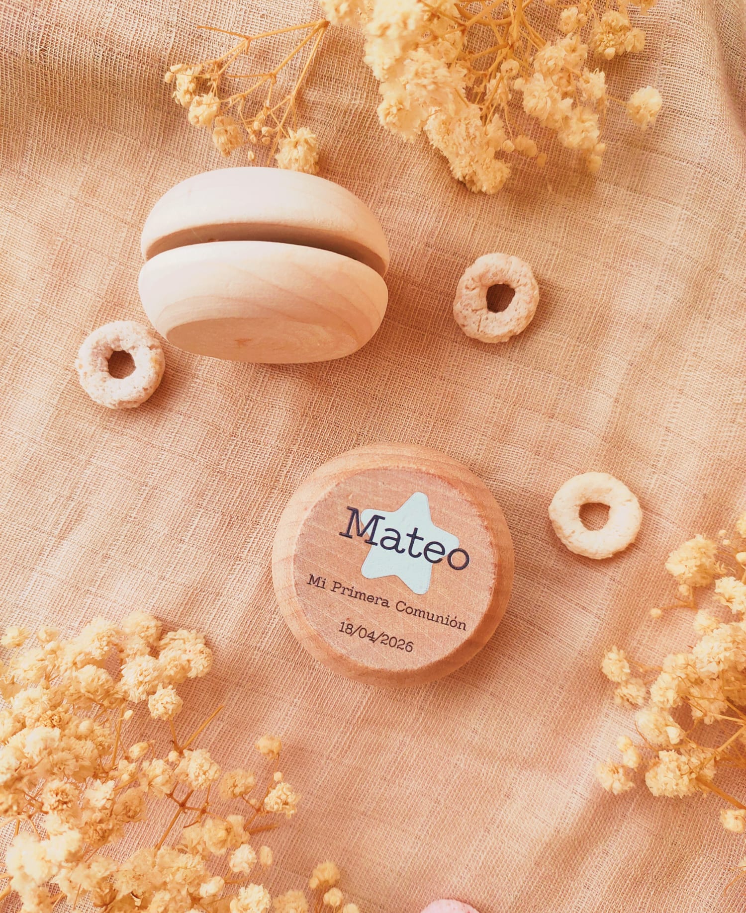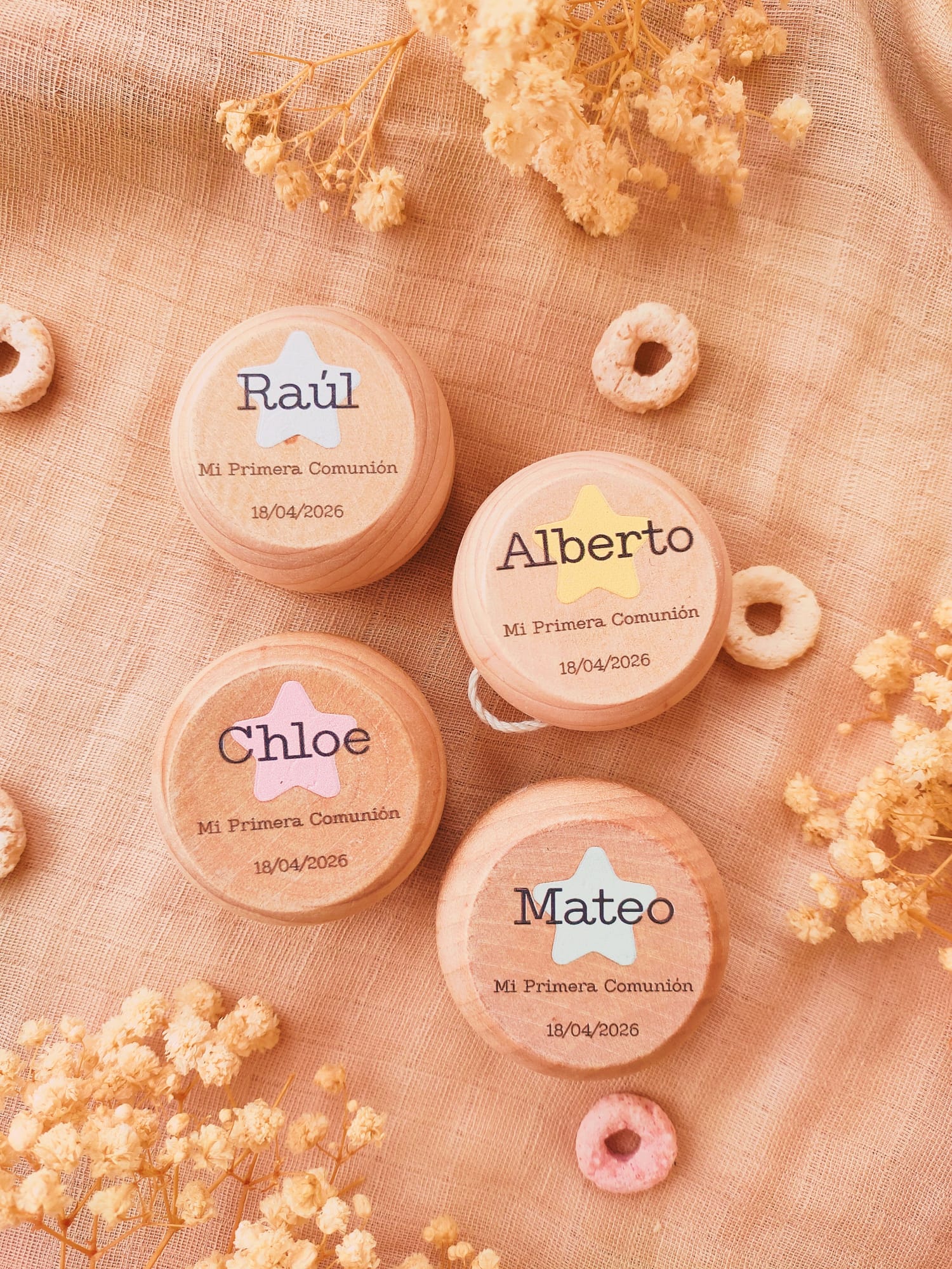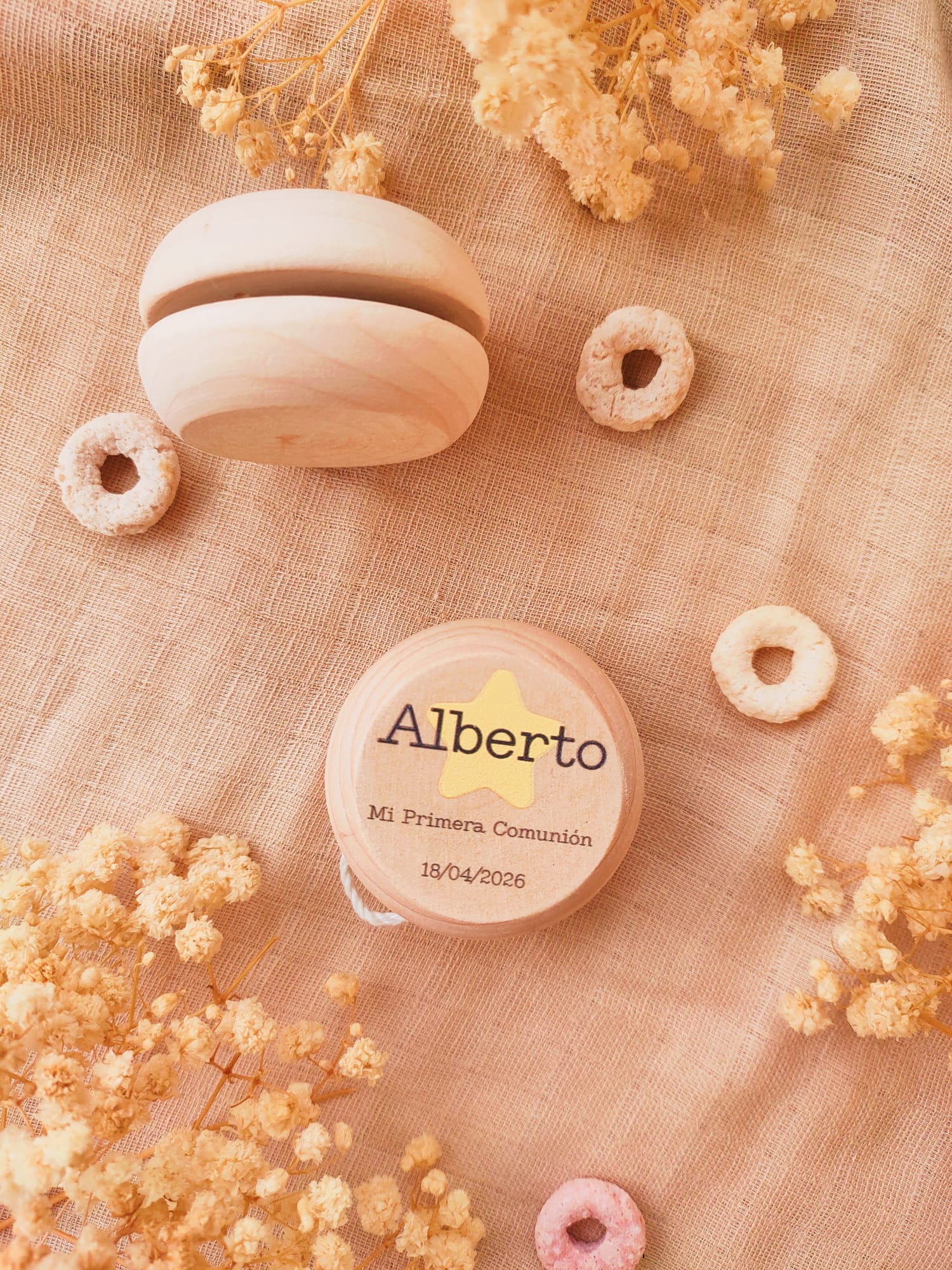Sorprende a tus amigos y familiares con un regalo de invitados que combina tradición y personalización. Nuestros yoyós de madera personalizados son el detalle perfecto para celebrar una Primera Comunión o un Bautizo, ofreciendo un recuerdo duradero y lleno de encanto.