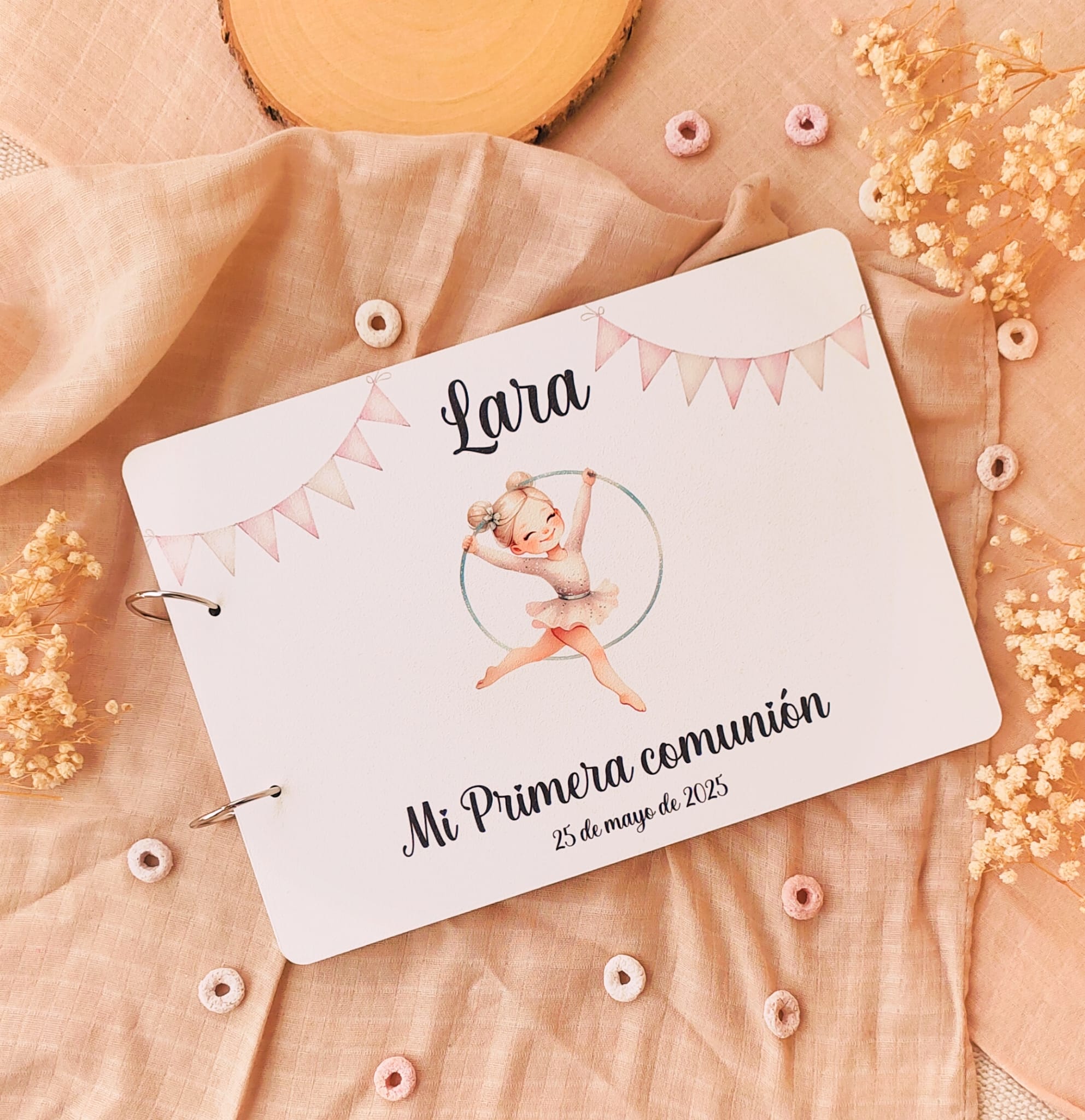 Cada libro de firmas  se personaliza con el nombre del niño o niña, la fecha del evento y una ilustración infantil, cuidando cada detalle para crear una pieza única. Su formato lo hace ideal para colocar en la mesa de firmas durante la celebración y, después, conservarlo como un recuerdo emotivo y decorativo.