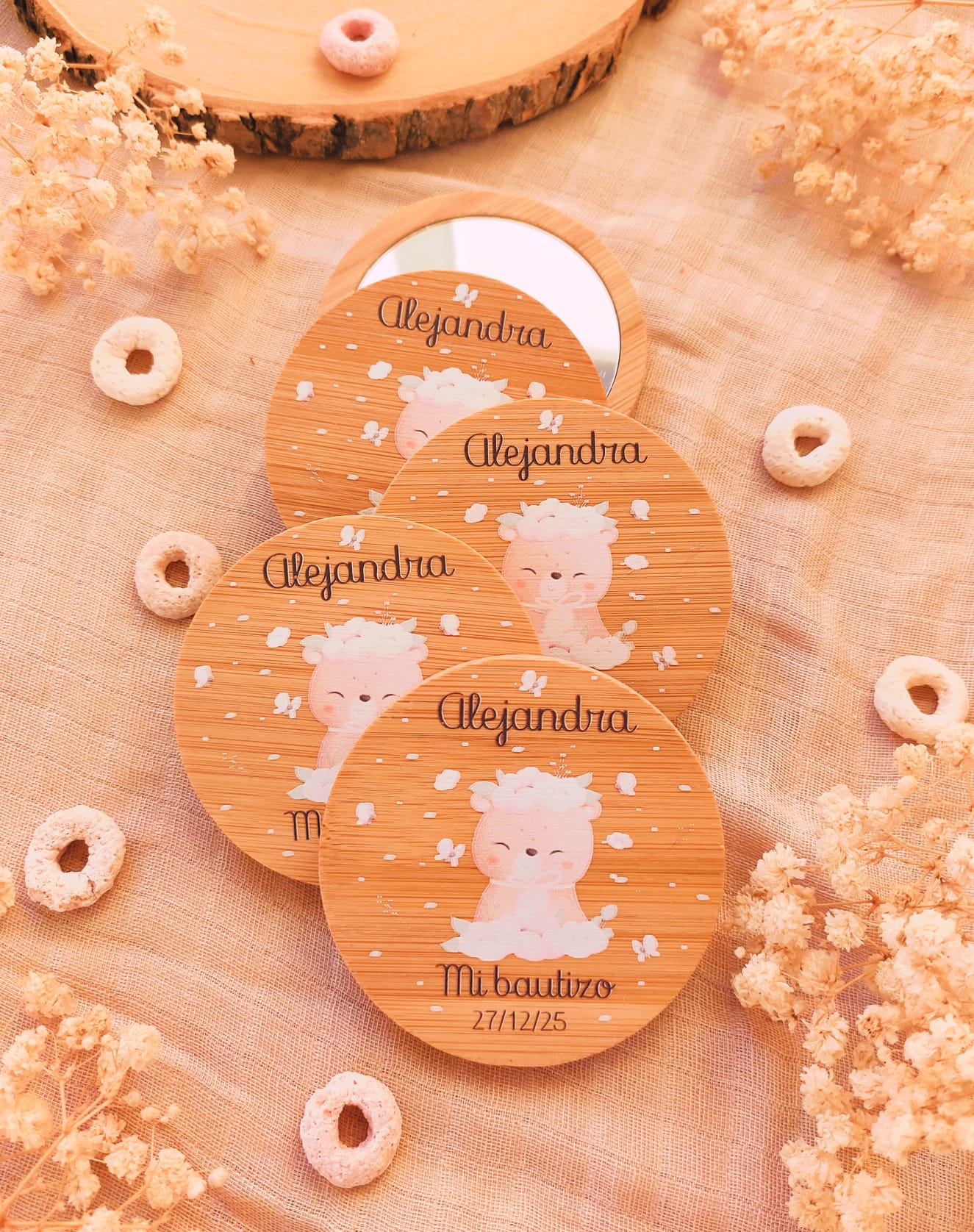 Buscas un detalle bonito y personalizado a la par que útil para celebrar un evento? Nuestros espejos de bambú grabados a color serán el detalle perfecto con el que seguro acertarás 💝
