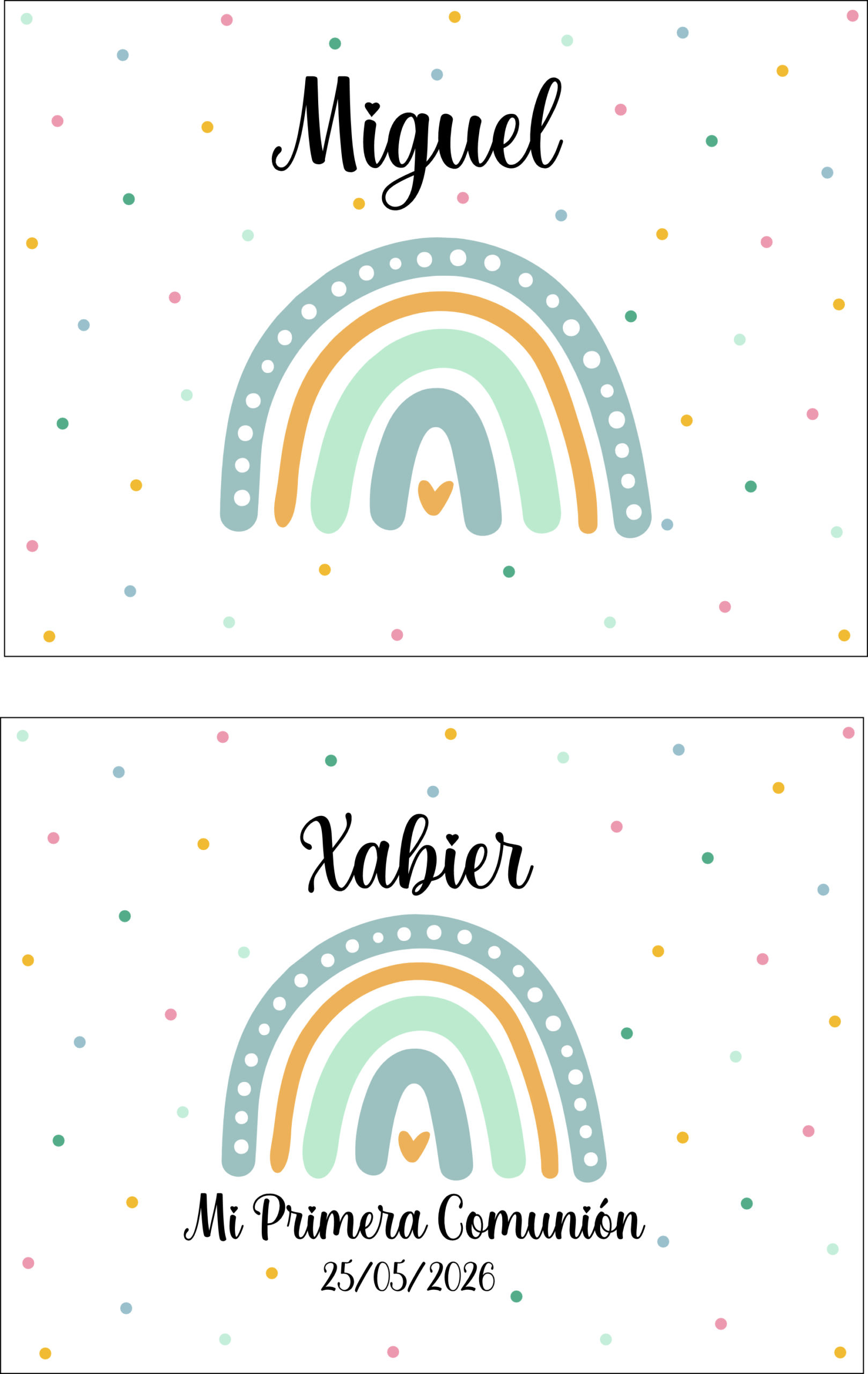 ✨ Por el otro: el nombre del niño o niña del evento, el tipo de celebración y la fecha