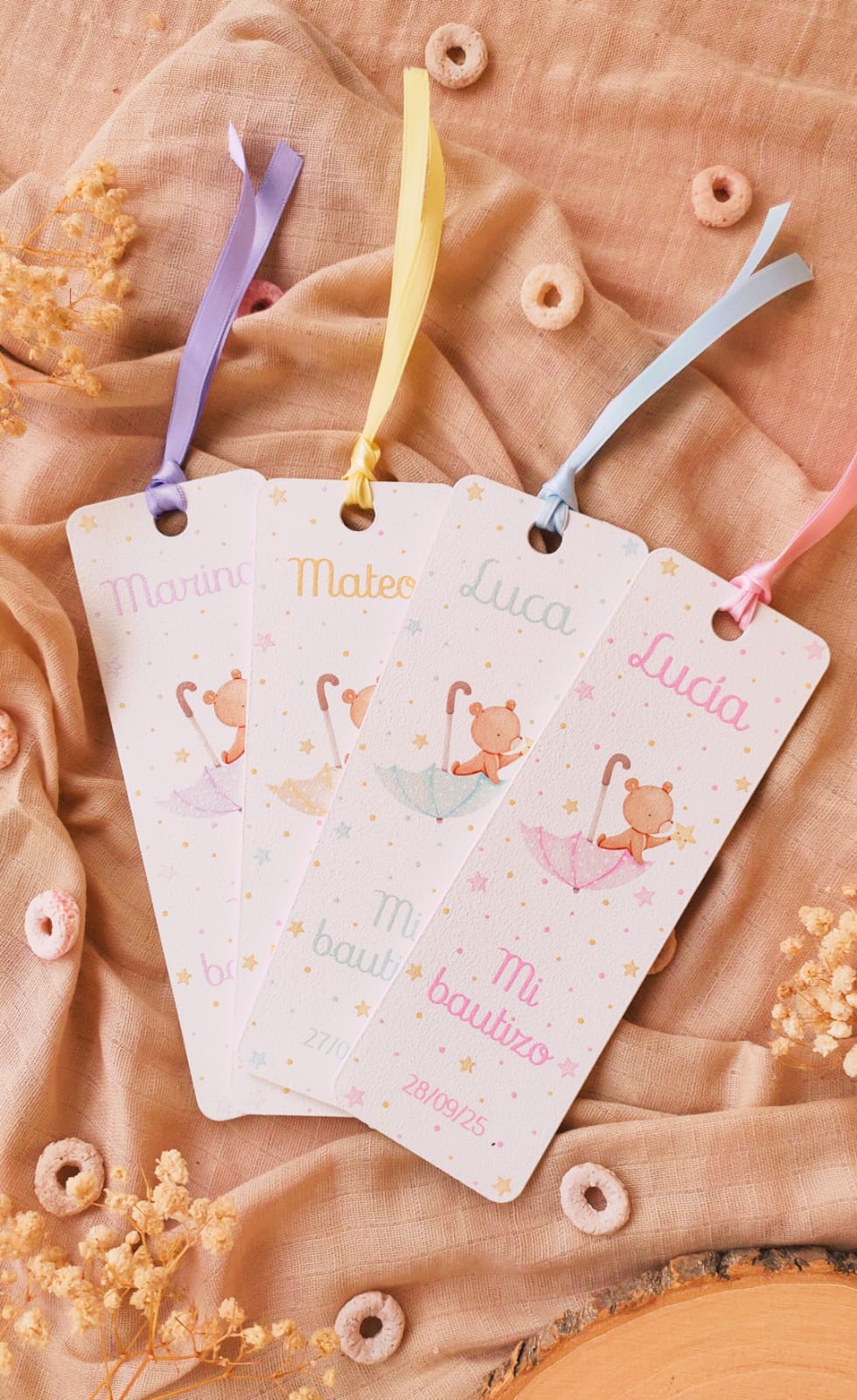 Los personalizamos con el nombre del peque, el evento(bautizo, cumpleaños, comunión…)y la fecha.