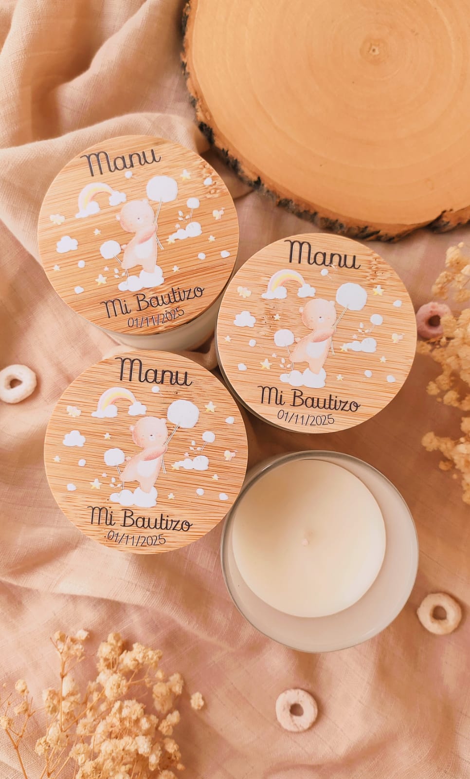 Medidas:7 cm de diámetro y 8,7 cm de altura. 280 gr de cera interior (la cera llega a la mitad del frasco), las velas son artesanales por lo que el color de la cera puede variar .